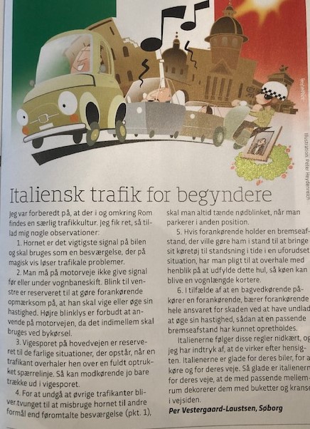 Det forventes ikke at alle kan den Italienske Parlør udenad, men der må gerne øves en bette i bilen.
