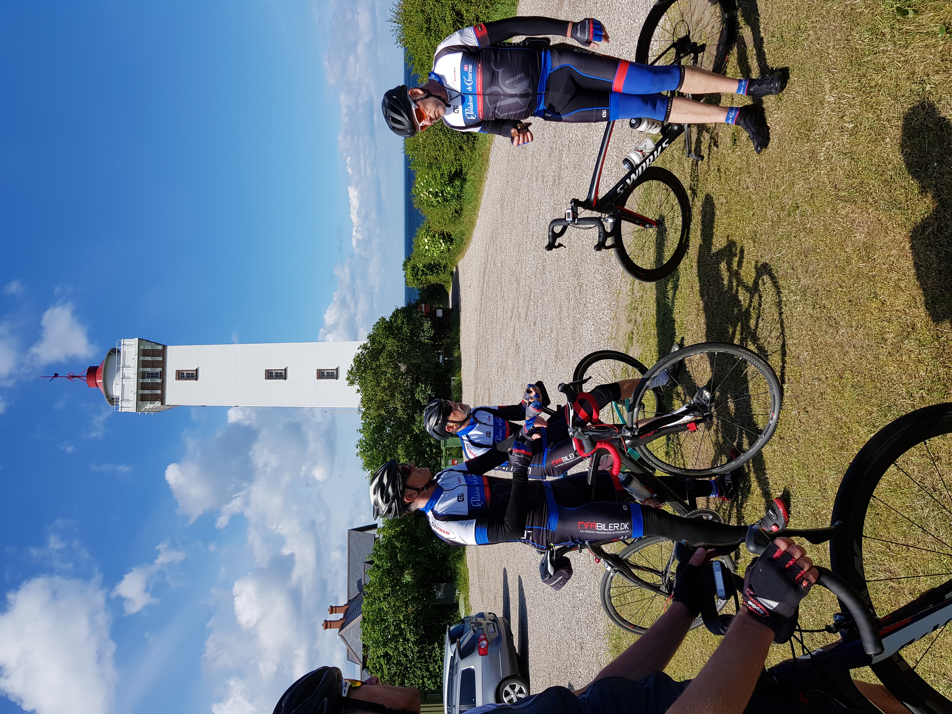 Vi drog ud til fyret, hvor turens første og eneste tissepause blev holdt. Herefter rundede vi lige stranden, så vi efterfølgende kan sige at vi har været hele den smukke ø rundt. Turen hjem gik over Brunshuse og af små veje til Voldtofte, Gummerup og Verninge. 111 km stod der på min Garmin da jeg igen rundede planken, med et fint snit på 30 km/t, takket være gode cykelkammerater, der brugte deres overskud til at tage monsterføringer i den kraftige vind. Tak til alle mand for en dejlig cykeloplevelse.