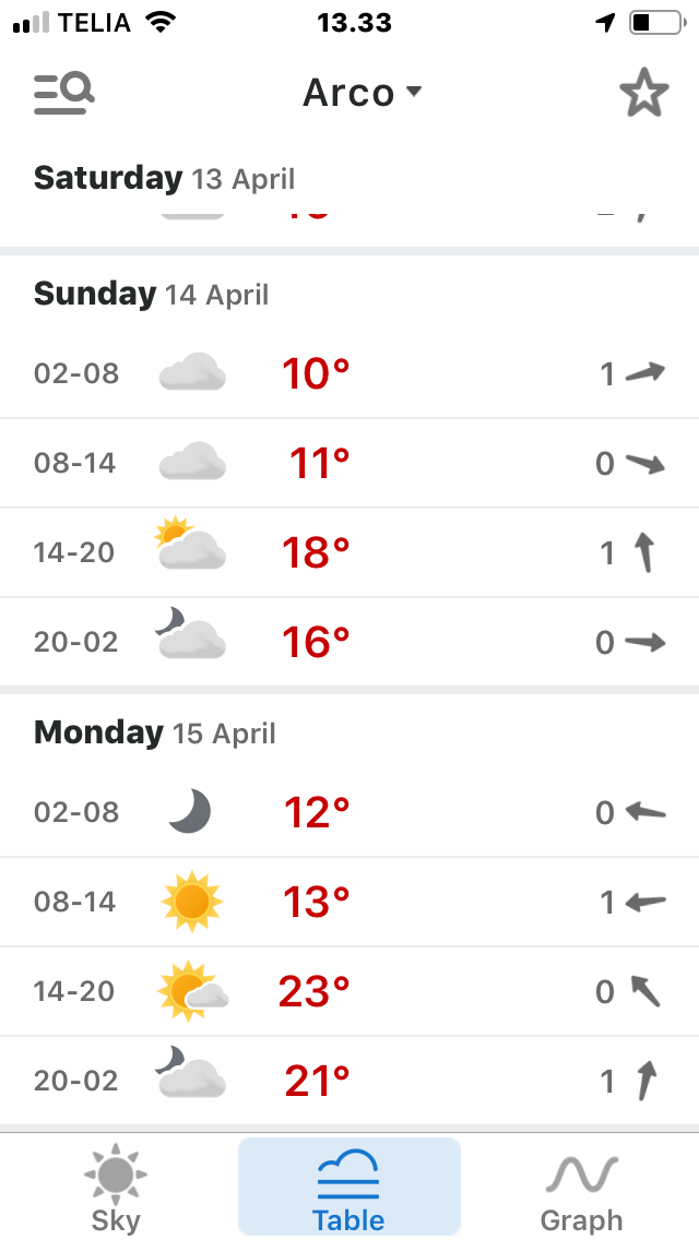 Kan se at temperaturen ved Riva Del Garda allerede er oppe på 19 grader i denne uge 3 af dagene, så det lover godt.