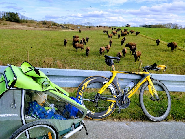 3 år og han sover stadig lidt middagslur - gerne i cykeltraileren, og så kan man se på bisoner, når man vågner. Turen var i torsdags.